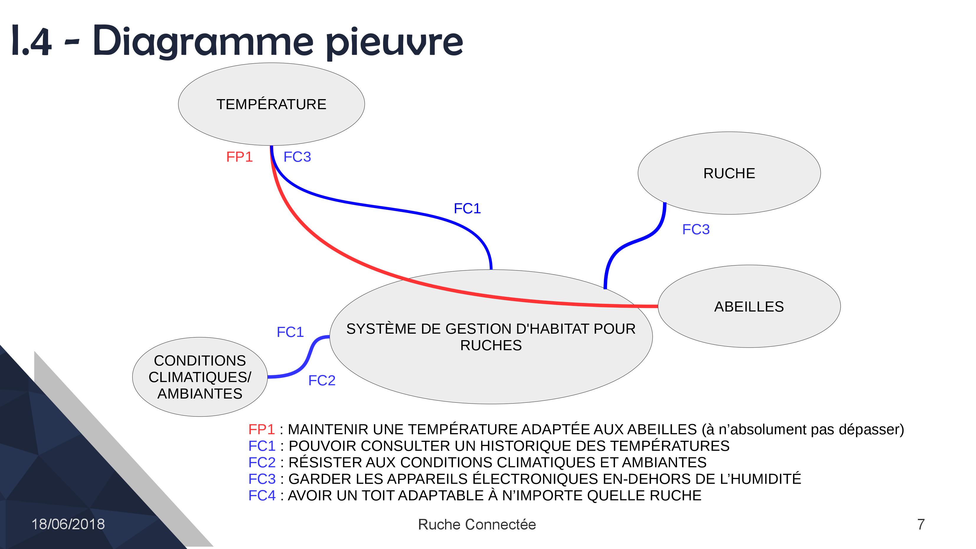 Notre projet devra obéir à une fonction primaire (en rouge) et à plusieurs fonctions contraintes (en bleu).