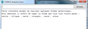 Un professeur du département Génie Mécanique et Productique (GMP) nous demande de lui programmer et d’interfacer une table traçante où la mécanique est déjà faite. La table traçante est piloté par 3 servomoteurs dont un qui permet de lever/abaisser le stylo. Ces 3 servomoteurs sont pilotés par l’intermédiaire d’une carte Arduino UNO. Le système doit être capable de tracer quelques formes géométriques simples (carré,triangle,cercle…) puis des formes plus complexes(sinus, fleur…).